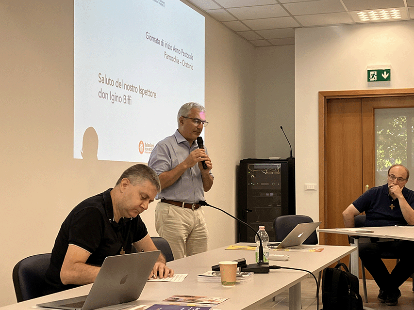 Partendo dal Quaderno di lavoro, che fa da riferimento e offre il contributo per la formazione degli educatori che operano in ambito salesiano, si è soffermato soprattutto sul sesto capitolo che tratta dei criteri oratoriani: ogni opera per essere salesiana deve essere “casa che accoglie, scuola che avvia alla vita, parrocchia che evangelizza e cortile per incontrarsi tra amici”. Approfondendo questi criteri, don Rossano ha ricordato che l’oratorio e la Parrocchia “prima che spazi, sono relazioni”. Occorre essere presenti e capaci di accogliere i giovani così come sono e lì dove stanno, incontrandoli anche nei cortili digitali. Gli educatori sono chiamati ad essere generativi e capaci di costruire relazioni, per essere sinodali, ovvero capaci di camminare assieme verso la meta che è Cristo Gesù, come faceva don Bosco con i suoi giovani.